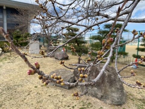 3月31日正午では、まだまだ「つぼみ」の状態です。少しピンクがかったところもありました。今週後半に気温が上がると一気に進むのでしょうか・・・。