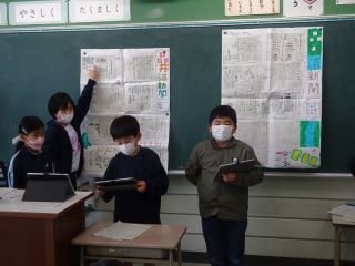 4年生が品井沼で学習したことを壁新聞にまとめました。