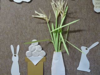 掲示担当の先生が作りました。うさぎのお月見ですね。
