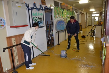 業務員さんと養護の先生が中心となって、作業を進めています。