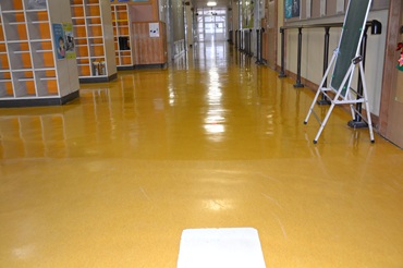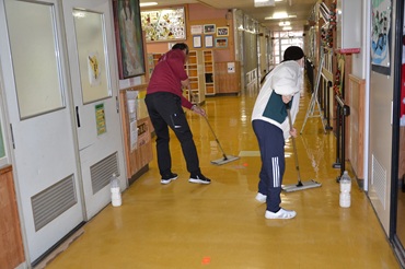 終業式を終え、人の出入りが少なくなった廊下のワックスがけを行いました。