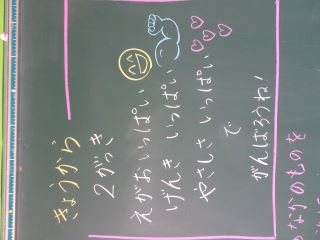 子供たちは先生方からのメッセージ黒板