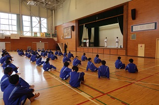 今日は1年生が,「少林寺拳法とは何か」など礼法や基本動作などの学習がありました。