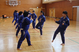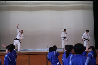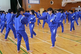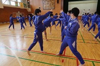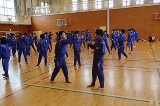 今日から3回にわたって1年生と2年生の体育の授業で,「少林寺拳法」の学習が行われます。