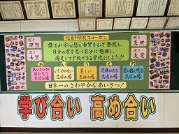 また、本校スローガンの両脇に笑顔がたくさんのっている「笑顔集」を掲示しました。