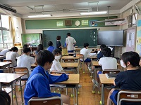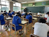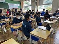 2組は担任不在のため、1学期の振り返りをしていました。