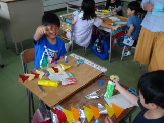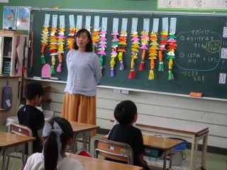 1年生では七夕に向けて図工で七夕飾りを作りました。