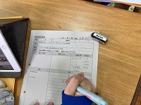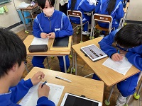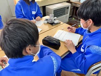 調理実習「ハンバーグ」の準備を班ごとにしています。