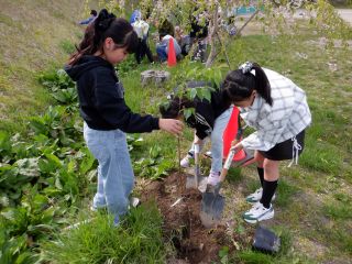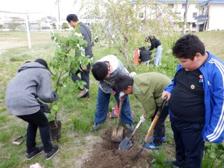 「学校みどりの日」に学校のみどり環境教育の推進を図るため、公益社団法人宮城県緑化推進委員会様より、桜の苗木を4本いただきました。