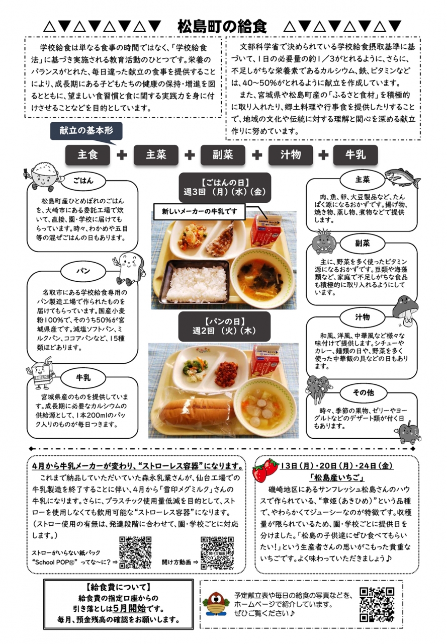 今年度から、松島町の給食でも、第3水曜日に、水産物や加工品を積極的に使っていきます。