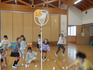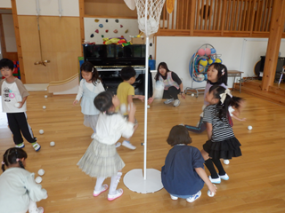 お月見クイズをしたあとは、みんなでお月見玉入れ
