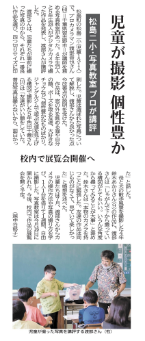 プロの写真家をお招きし、4,5年生を対象に行った写真学習プログラムが9月25日付の河北新報に掲載されました。