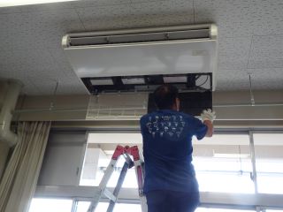 2学期に向けて職員で各教室のエアコンのフィルターを掃除しました。