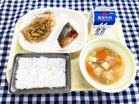 今日の地場産物は、松島産ごはん、松島産だいこん、松島産ねぎ、のり、あぶらふ、牛乳です。