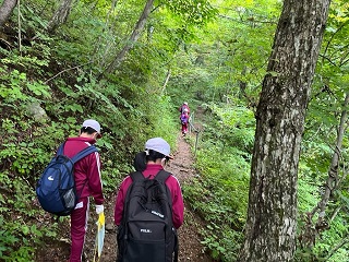 ▲最初の活動は「ウォークラリー」です!! グループのみんなと協力して進みます!! こんな坂道もなかなか体にこたえます…。