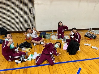 ▲お昼は自然の家の施設内でいただきました!! ウォークラリーを頑張ったからこそなおさらおいしく感じます!! 作ってくれた家族に感謝です!!