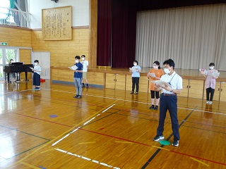 先生方が集まり,音楽朝会での曲を歌いました。