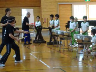 3日(木)五大堂太鼓の八木さんと千葉さんに来ていただき、5年生の練習の様子を見ていただきました。