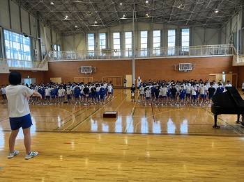 縦割り練習後、実行委員が中心となり「全校合唱」の練習をしました。
