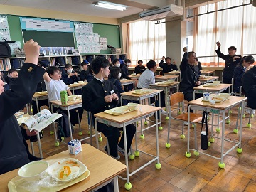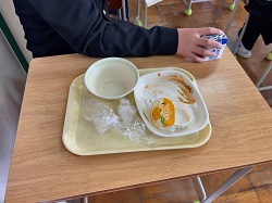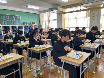 松島中学校ではみんなこんな感じで給食をいただいています。