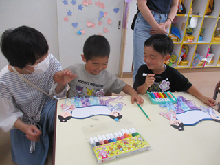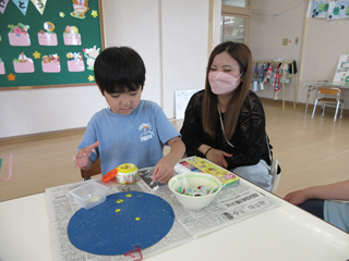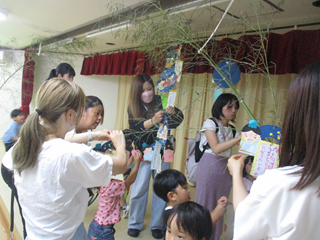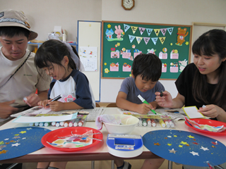 クラス活動では、親子で七夕製作をしました