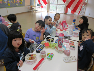 みんなでお弁当を食べる前に、噛むことの大切さを確認しました!