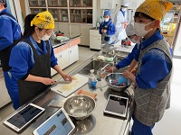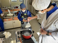 ハンバーグ、ブロッコリーサラダ、ポリ袋ご飯を作っています。