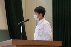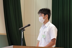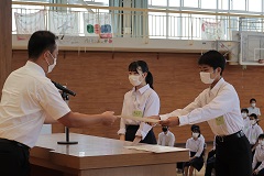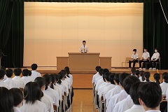 8月26日(金)2学期がスタートしました。久しぶりに会った級友と笑顔あふれる一日になりました。各学年・生徒会代表生徒が2学期の抱負を語りました。賞状伝達では、サッカー部の県大会2位・フェアプレイ賞、東北大会出場と吹奏楽部の県大会銀賞を讃えました。