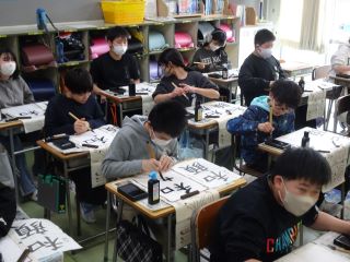 3~6年生は瑞巌寺書道展に向けて書きぞめの練習をしています。