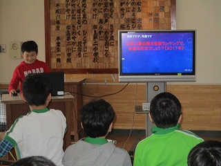 地域創生に向けて,6年生が5年生にアイデアを発表2月18日(火)の5時間目,教室とホールの2会場に分かれて,