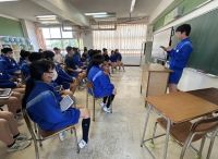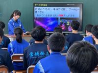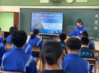 総合的な学習の時間に、3年生が2年生に向けて修学旅行の報告会を行いました。3年生は、自主研修を通して学んだことや、修学旅行の様子を分かりやすくスライドにまとめ、クイズも交えながら堂々と発表していました。