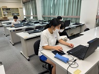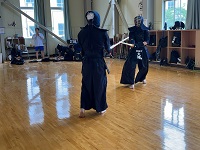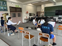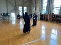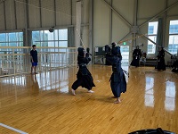試合形式の練習中です。顧問の先生も気合いを入れて生徒達と取り組んでいました。