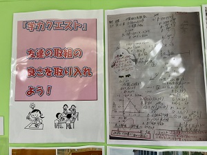 参考になる家庭学習ノートは、廊下の掲示板に紹介されています。