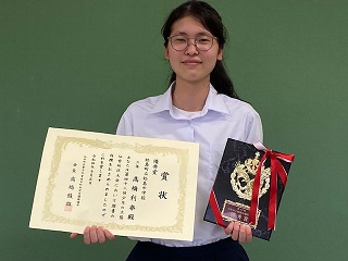 本日開催された「第43回少年の主張仙台地区大会」で、本校3年髙橋利奈さんが、見事優秀賞を受賞し、県大会出場を決めました。テーマは「笑顔でHello!」。将来は、生まれ育った松島町で、英語を使って世界の人々を心をつなげる職業に就きたいという思いを伝えました。県大会は、9月29日(木)に名取市文化会館で開催されます。