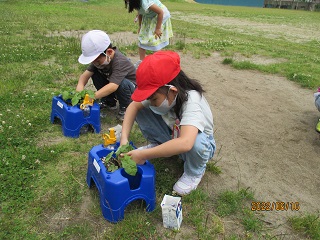 6月16日(木)1年生がアサガオの間引きをしました。