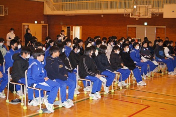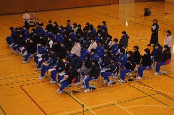 1年生では、4校時に学年集会を行い2学期の反省等を行いました。