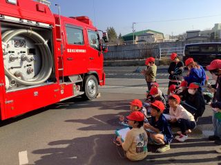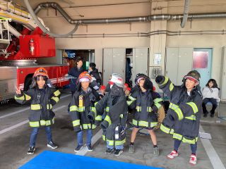 消防署や消防車の中を見せてもらったり、防火服を着せてもらったりして楽しく学ぶことができました。