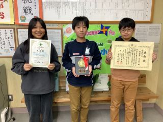 みやぎ小・中学生いじめ防止動画コンクールの激励賞や、交通安全優良学校として学校に賞状が贈られました。