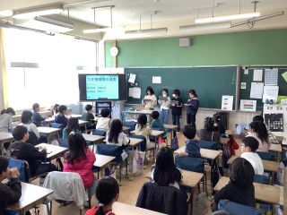 3年生が1年間の総合的な学習の時間(「松島探検隊」「松島かき探検隊」)のまとめとして、どんなことをしたか、2年生に発表しました。