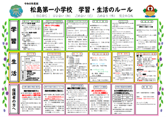修了式の日、各ご家庭に1枚ずつ松島第一小学校のルールが書いてある紙を配りました。