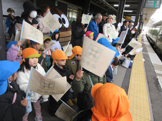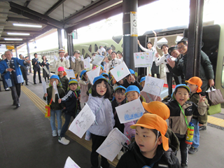 第五幼稚園の友達と一緒に『トランスイート四季島』の発車を盛り上げることができました