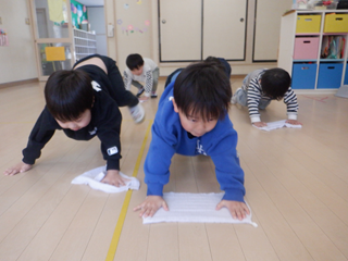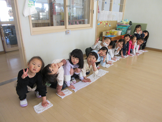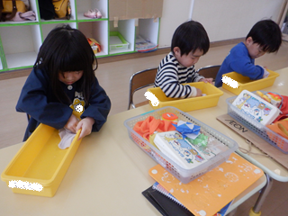 すみれ組さんは、遊戯室のお掃除もみんなで力を合わせて取り組んでくれました