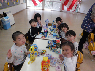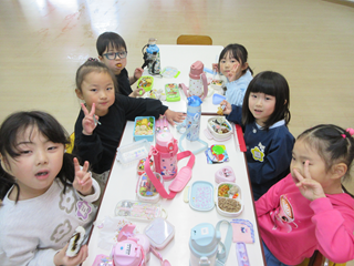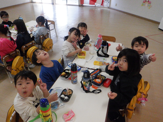 お弁当は、遊戯室でみんな一緒に食べました