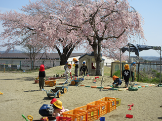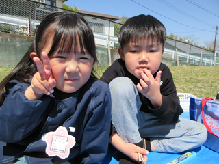 第一幼稚園の桜も満開になり、みんなでお花見をしました