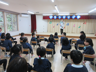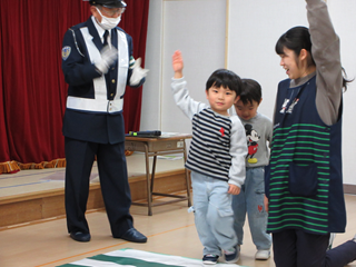 交通指導隊の方に来ていただき、紙芝居を見たり