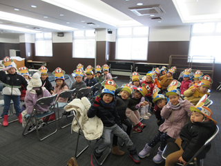 そして、第五幼稚園のお友達と役場の大会議室で合流