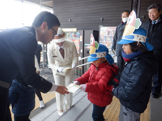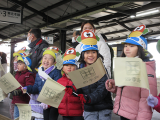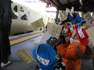 松島駅に停車している『四季島』に乗るお客さんをお出迎えをして、