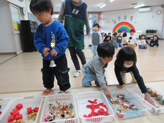 さくら組さんは小太鼓を使って合奏に挑戦しました