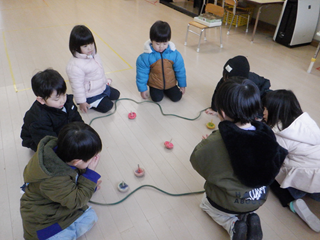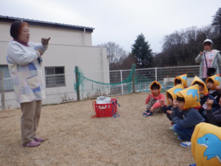 幼稚園で火災が起こったことを想定し、避難訓練を行いました