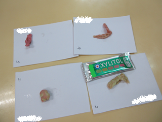 今日は各クラス『咀嚼チェックガム』を使って、自分の噛む力を知りました